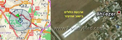 בישוב אחיעזר שליד לוד אובחנה מחלת הניוקסל במשק עופות המונה כ- 120,000 תרנגולות פיטום בני כ-25 יום.