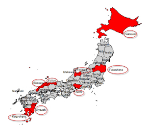 יפן מתמודדת בחודש האחרון, עם התפרצויות נרחבות של שפעת עופות, H5N1 במחוזות שונים ברחבי המדינה. היום דווחו שני מקרים נוספים במחוז Miyazaki בשתי החוות יחד כ- 100,000 עופות. היקף האירועים הנרחב החל בנובמבר 2010, לאחר אבחון הנגיף במחוז Shimane. בתמונה מצויינים המחוזות ביפן, בהם אובחנה המחלה.