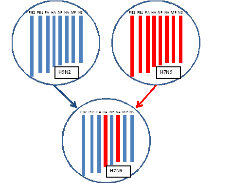 מהו מקור הנגיף ? הנגיף החדש מהווה שילוב של שני גנים (המאגלוטינין ונויראמינידאז) מנגיף A\H7N9 ואת ששת הגנים האחרים מנגיף A\H9N2. הנגיף חסר כל סמן לאלימות גבוהה בעופות, אך מקורו בנגיף H9N2 אשר הפוטנציאל הפנדמי שלו ידוע.