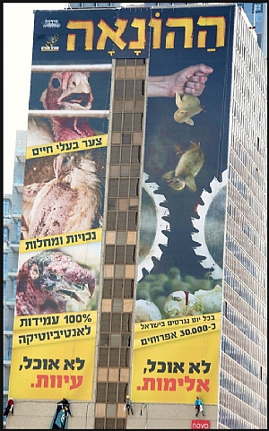 קירות שקופים יצאו במסע פרסומי ענק כנגד ענף העופות בישראל. המטרה היא לחשוף באופן מגמתי את הפעילות בענף במטרה לפגוע בפעילות תעשיית ביצי המאכל ובשר העוף. הקמפיין החל עם 2 שלטי ענק באזור הבורסה ברמת גן למשך שבועיים וביום שלישי הקרוב צפוי שלט חוצות ענק נוסף באיילון.