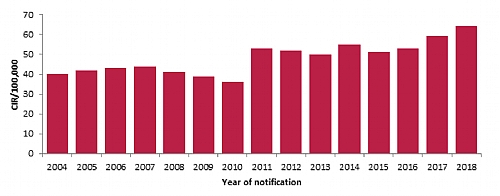 אירועי קמפילובקטר לכל 100,000 תושבים לפי שנים - אירלנד
