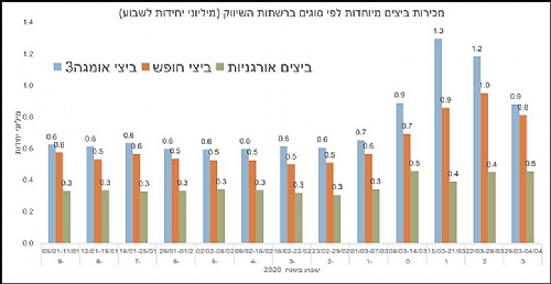 המכירה השבועית של ביצים מיוחדות, טרם "בהלת הקורונה" עמדה על כ-1.5 מיליון ביצים בשבוע. בשבועות בהן הצרכן הישראלי, הסתער על המרכולים, המכירה עמדה על 2.3 מיליון ביצים (800 אלף ביצים יותר בכל שבוע - זו עליה של 53%). חלק מההסבר נעוץ בכך שבימים כתיקונם, מייצרים יותר "ביצים מיוחדות" ממה שהשוק צורך, כך שחלק נמכר כביצים רגילות. ב"ימי קורונה", כאשר קיים מחסור כללי בביצים, אפשר להוציא את כולן במחיר הגבוה.