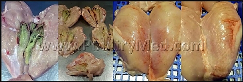 נתונים ודיווחים של עמיתים למקצוע, מתארים מספר אירועים של פסילות במשחטה מפתולוגיית ה"שריר הירוק" וחזה מעוצה.