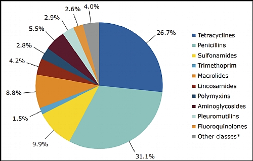 הדו"ח האחרון מצא שמתוך המכירות הכוללות של תרופות אנטי-מיקרוביאליות ב-31 במדינות בשנת 2020, השימוש הגדול ביותר בבעלי חיים המיצרים מזון לאדם, היה של פניצילינים (31.1%), טטרציקלינים (26.7%) וסולפנאמידים (9.9%).