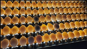 שיקוף ביצים בתחנת המיון: ניתן להבחין בביצים ש"הרקיבו" כתוצאה משטיפה שהובילה