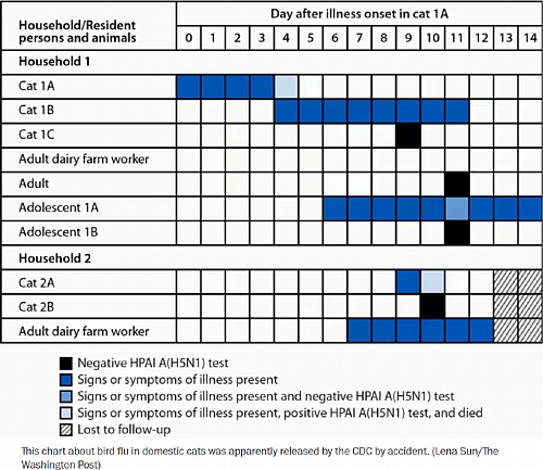 עם כניסת הממשל החדש, נעצר פרסום של גופים ממשלתיים כולל זה של ה-CDC ה- MMWR. למרות ש-MMWR חידשה את הפרסום השבוע, שלושה מחקרים בתחום שפעת העופות לא פורסמו. על פי מקורות, הדיווחים החסרים מתארים העברה של נגיף שפעת העופות בין חתולים, ובין חתולים לבני אדם. בטעות, בוצע פרסום חלקי, שהורד מיד מאתר כתב העת. כך מדווח בעיתונות האמריקאית (ניו-יורק טיימס, וושינגטון פוסט).