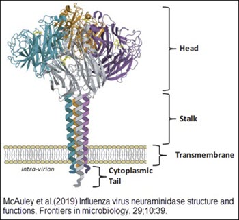 וריאנטים של נויראמינידאז עם גבעול ארוך קשורים ליכולת טובה יותר של הנגיף לעבור בין יונקים. מאפיין מבני זה משפר את יכולת הקישור של הנגיף לרקמות דרכי הנשימה וריריות, ובכך משפר את יכולת ההפצה של הנגיף. לעומת זאת, נגיפים עם NA בעלי גבעול קצר קשורים לפתוגניות גבוהה בעופות, אך ייתכן ויכולת ההעברה בין יונקים נפגעת. גבעול NA קצר, נצפה לעיתים קרובות בהתאמת נגיף שפעת A בין מינים של עופות (1,2), כאשר הוא עשוי להיות קשור לעליה באלימות הנגיף ויכולת ההפצה (3,4). בנוסף, נמצא כי וריאנטים עם גבעול ארוך מעניקים יציבות גבוהה יותר ומספקים אתרי גליקוזילציה נוספים, שעשויים לתרום ליכולת הנגיף להתחמק ממערכת החיסון ולשפר את כושר ההדבקה של נגיפי שפעת ביונקים. לעומת זאת, קיצור הגבעול עלול להפחית את יציבות הנגיף. תכונות מנוגדות אלו מדגישות את האבולוציה וההתאמה לאורך הזמן של נגיף H5N1 בתגובה לשינויים סביבתיים ולחצים סלקטיביים שונים.