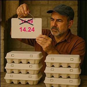 ב-1 בנובמבר ייכנס לתוקף עדכון אוטומטי שיעלה את מחיר אריזת 12 ביצים גודל L, ב-15 אגורות ל-14.24 שקל. מדובר בעלייה של כ-1% בלבד, המשקפת שינויים בעלויות הייצור והשיווק. מחיר הביצים עודכן בפעם האחרונה לפני כשנתיים וחצי, בחודש פברואר 2023, אז עלה מחירן ב-16%.